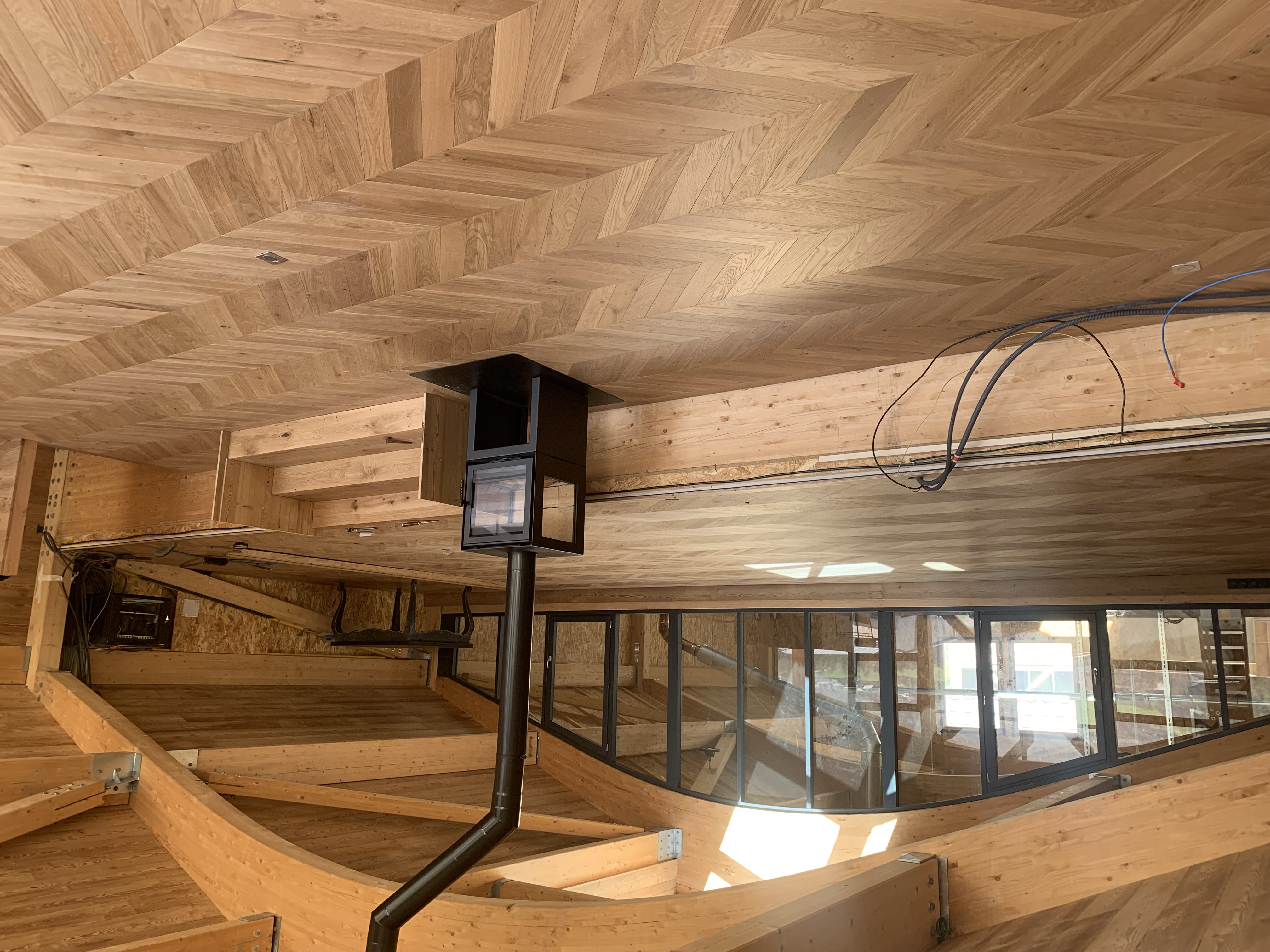 - Ouate de cellulose et laine de bois pour l’isolation, un maximum de bardage bois en finition.