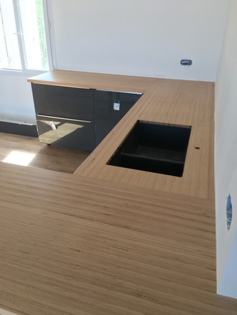 - Plan de travail en dekton, quartz, mélèze, baubuche, stratifié…